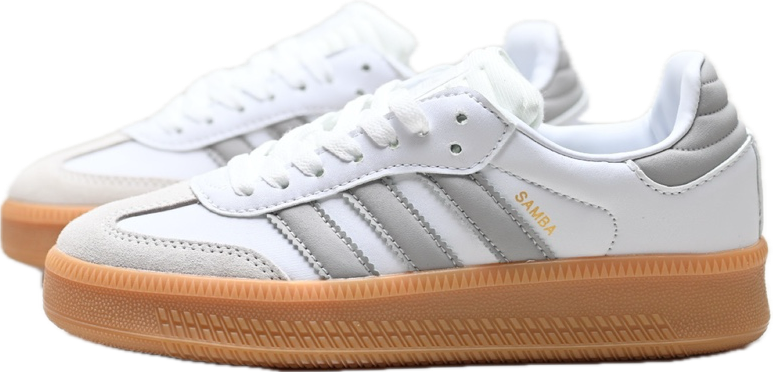Las Adidas Samba XLG Blancas y Grises son una versión sofisticada del modelo clásico, destacando por su diseño en piel blanca con detalles en gris y suela XLG caramelo. Este rediseño mantiene la esencia original, pero con un toque moderno gracias a su suela extra gruesa, que aporta altura y un look actualizado para los amantes del streetwear.