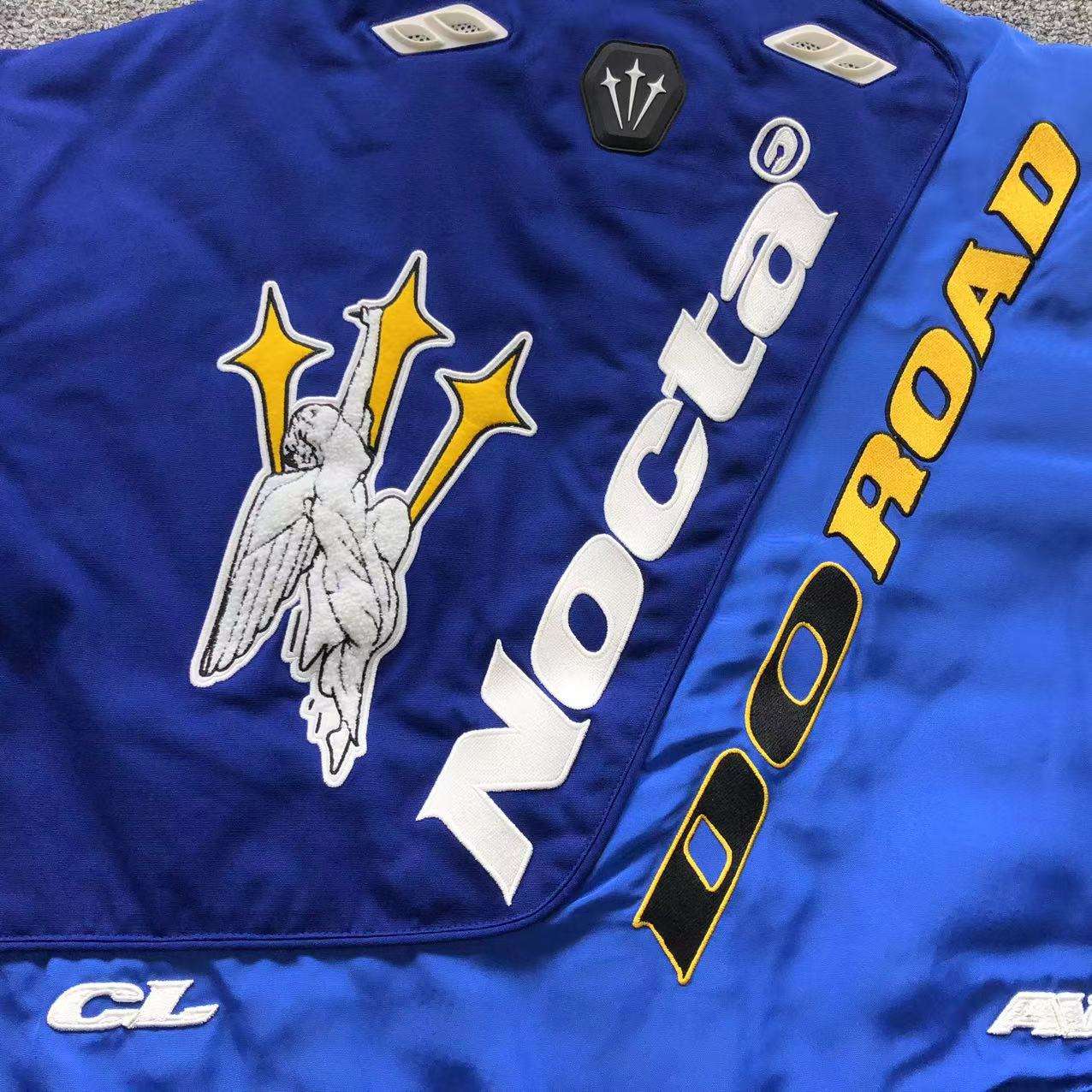 - Gráficos Exclusivos: Bordados y estampados en 3D con el icónico logo de NOCTA, el ángel con tres estrellas y el distintivo «DO ROAD», dándole un look llamativo y único.